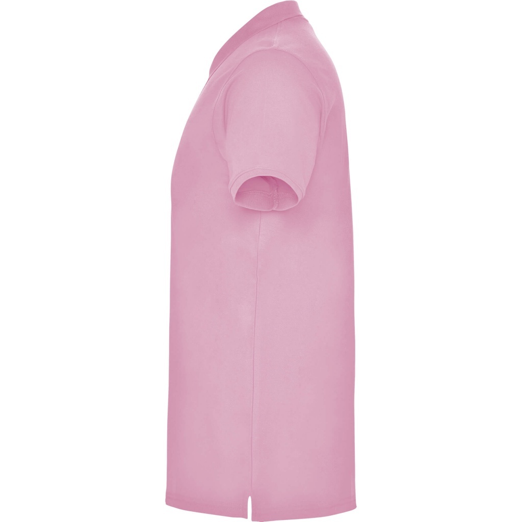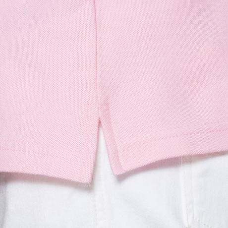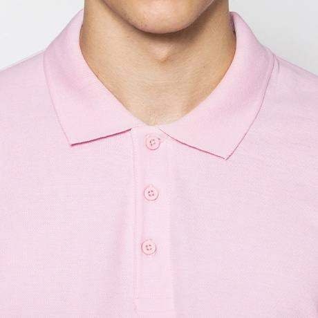 Koszulka polo z krótkim rękawem. Wzmocnione, kryte szwy przy kołnierzyku. Prążkowany kołnierzyk i mankiety. Szwy boczne. Zapięcie na trzy guziczki. Rozcięcia po bokach.