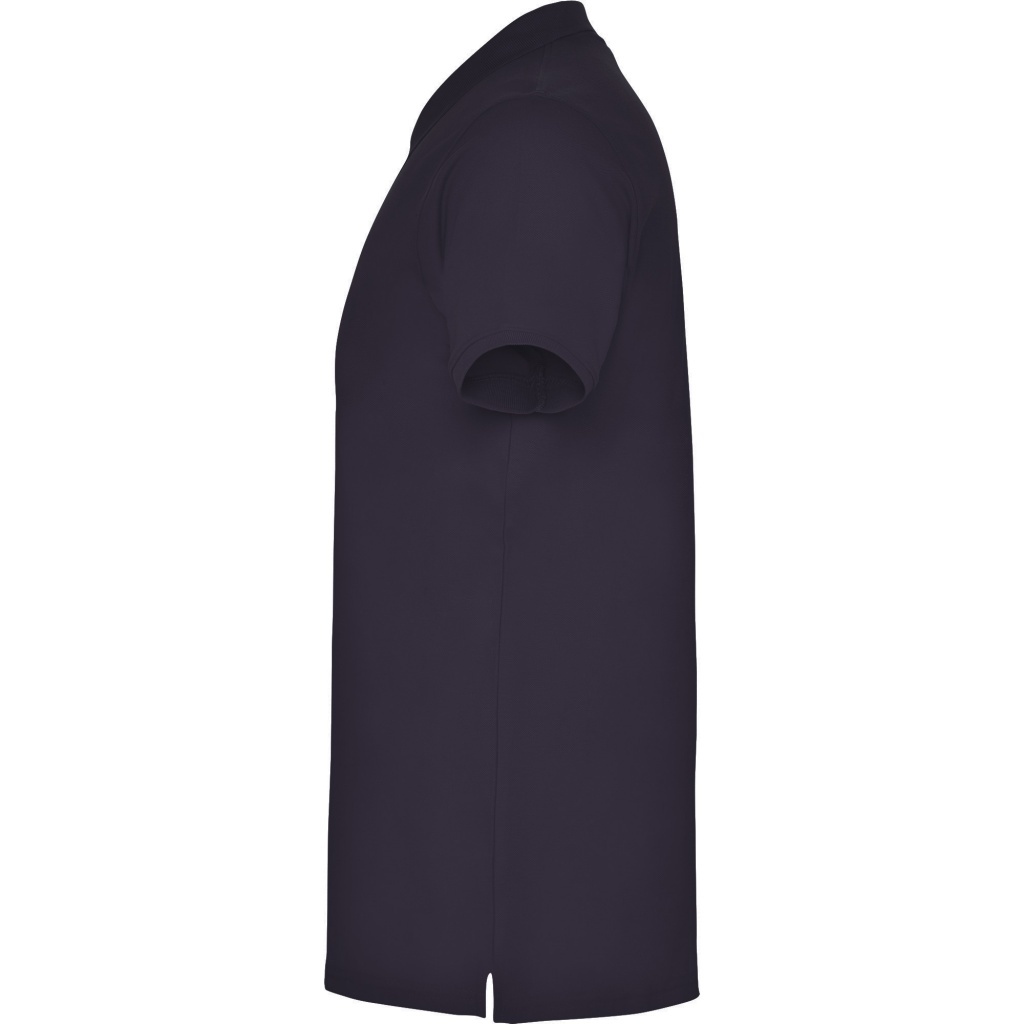 Koszulka polo z krótkim rękawem. Wzmocnione, kryte szwy przy kołnierzyku. Prążkowany kołnierzyk i mankiety. Szwy boczne. Zapięcie na trzy guziczki. Rozcięcia po bokach.