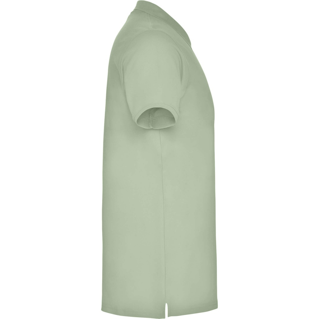 Koszulka polo z krótkim rękawem. Wzmocnione, kryte szwy przy kołnierzyku. Prążkowany kołnierzyk i mankiety. Szwy boczne. Zapięcie na trzy guziczki. Rozcięcia po bokach.
