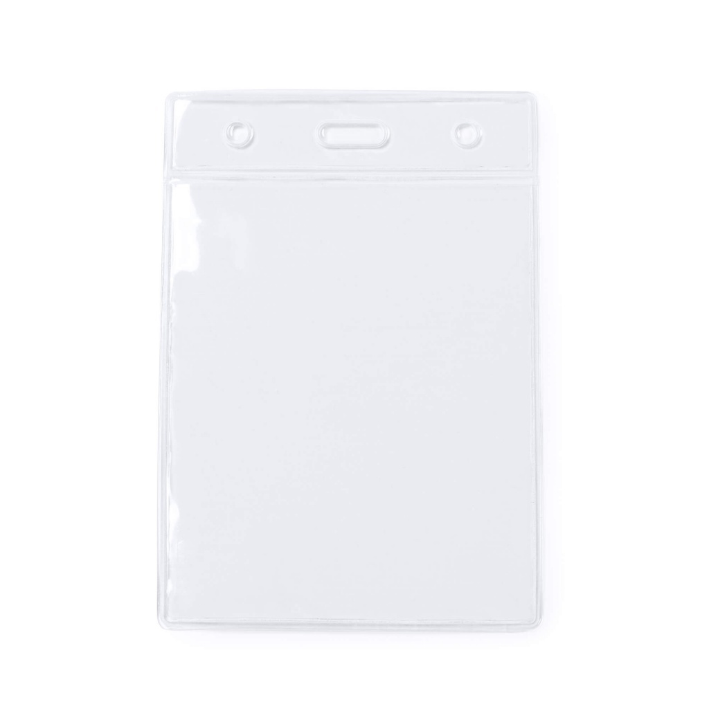 Przezroczysty uchwyt na plakietkę z PCV o pionowym wzorze.
