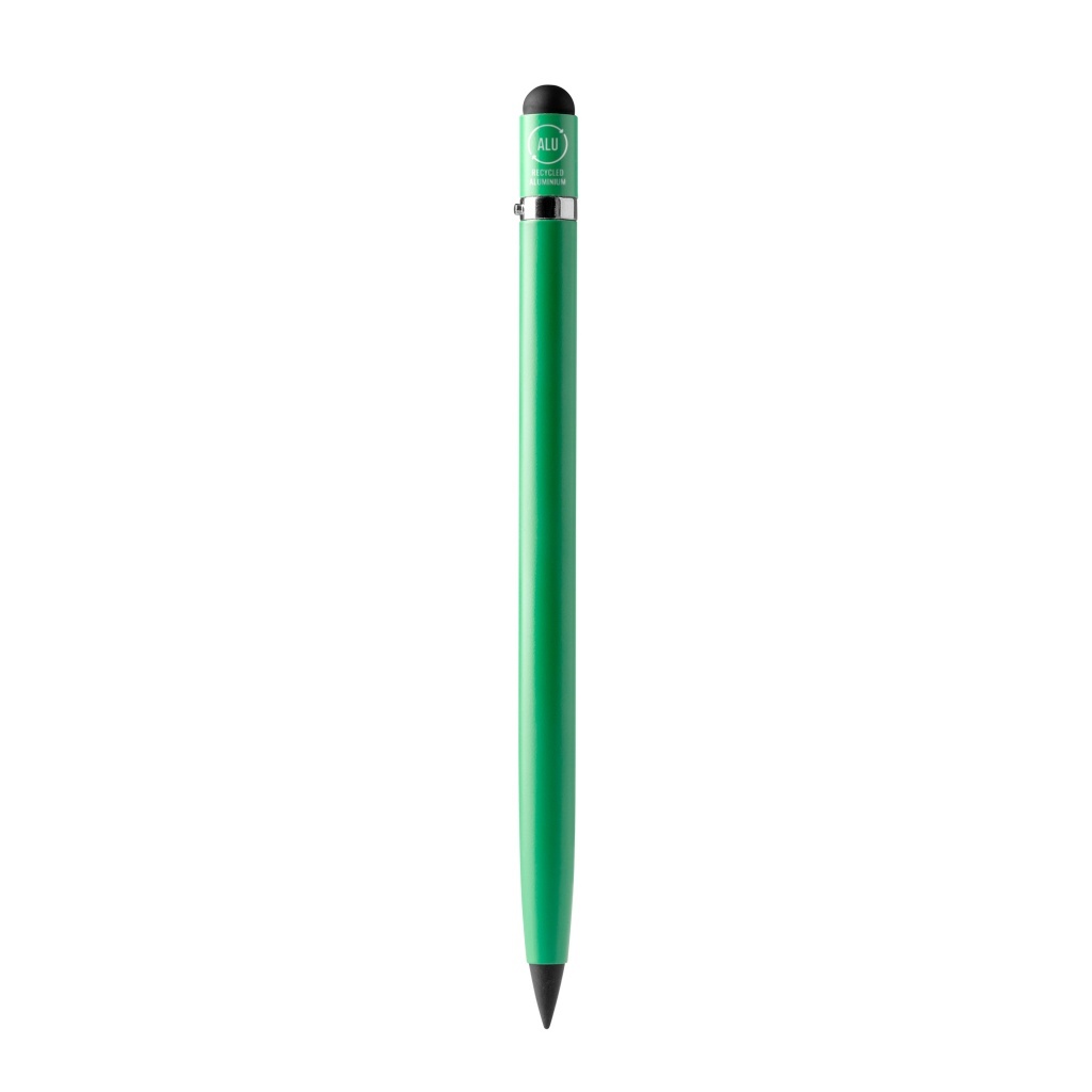 Ołówek z korpusem wykonanym z aluminium pochodzącym z recyklingu i gumką łączy trwałość, praktyczność i elegancję w jednym przyrządzie do pisania. Korpus z aluminium z recyklingu zapewnia solidność i długowieczność produktu, jednocześnie ograniczając ilość odpadów i wspierając ochronę środowiska.