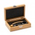 W skład zestawu wchodzi korkociąg ze składanym ostrzem, korek oraz pierścień ociekowy. Całość zapakowana w etui wykonane z bambusa.