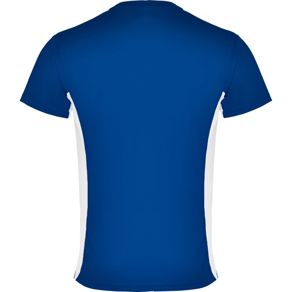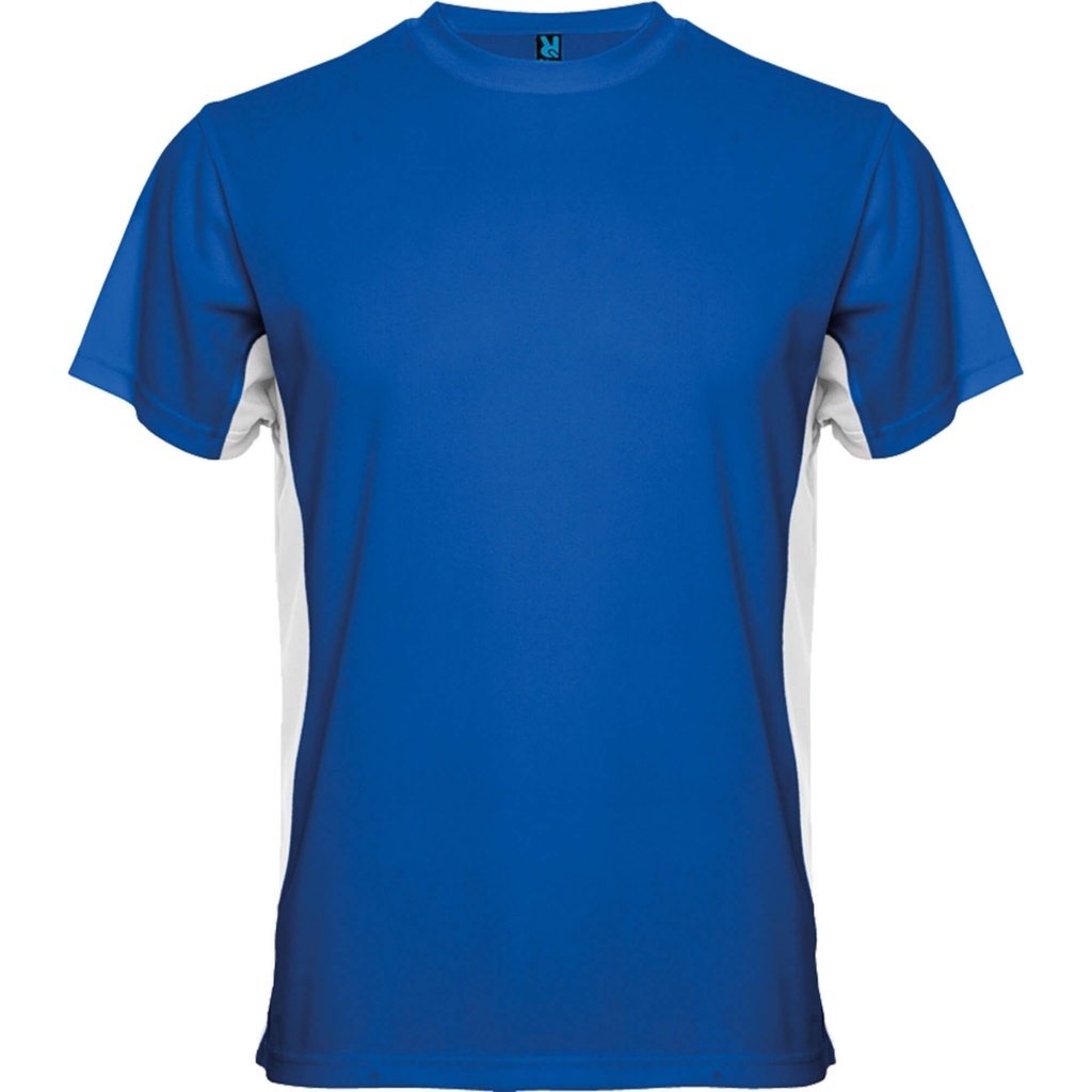 Dwukolorowa koszulka techniczna z krótkim rękawem. Okrągły kołnierzyk, kryte szwy wokół karczku. Kontrastowe wstawki po bokach. Materiał łatwy w praniu, szybkoschnący i oddychający.