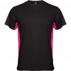 Dwukolorowa koszulka techniczna z krótkim rękawem. Okrągły kołnierzyk, kryte szwy wokół karczku. Kontrastowe wstawki po bokach. Materiał łatwy w praniu, szybkoschnący i oddychający.