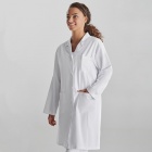 Ochronny fartuch VACCINE — praktyczne i trwałe rozwiązanie do laboratoriów, gastronomii oraz przemysłu spożywczego. Doskonały zarówno pod nadruk, jak i pod haft; posiada wymienną metkę, co umożliwia stworzenie własnej linii odzieży.