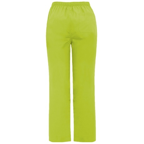 Długie spodnie unisex o prostym kroju nogawki. Pas z gumką, zapinany na guzik i zamek. Tylnia kieszeń.