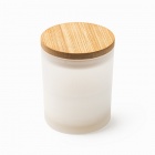 Świeca zapachowa w przezroczystym szkle z bambusową pokrywką. Zapach: wanilia.