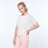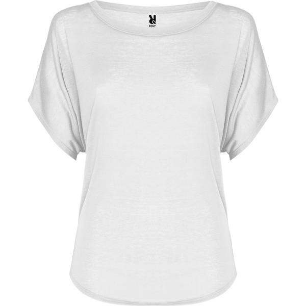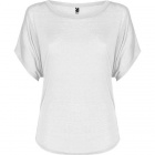 Koszulka typu oversize z szerokim dekoltem, krótkimi rękawami w nietoperzowym stylu oraz zaokrąglonym dołem.