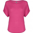 Koszulka typu oversize z szerokim dekoltem, krótkimi rękawami w nietoperzowym stylu oraz zaokrąglonym dołem.