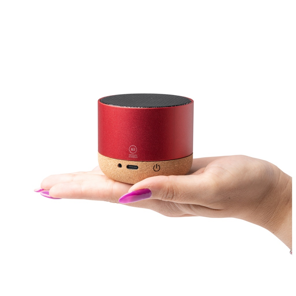 Bezprzewodowy głośnik wykonany z aluminium pochodzącego z recyklingu z korkową podstawą — połączenie nowoczesnego designu i troski o środowisko. Wyposażony w technologię Bluetooth 3.0, umożliwia bezprzewodowe odtwarzanie ulubionej muzyki przy zachowaniu czystego, nasyconego brzmienia. Mimo kompaktowych rozmiarów generuje moc 3 W, oferując wyraźny i pełny dźwięk. W zestawie znajduje się kabel USB C do ładowania. Produkt jest zapakowany w ekologiczne opakowanie, podkreślające nasze zaangażowanie w redukcję wpływu na środowisko poprzez stosowanie materiałów takich jak aluminium z recyklingu i korek.