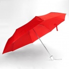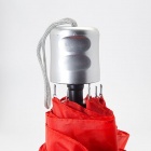 Składany parasol z dopasowanym pokrowcem. Rękojeść, żebra i zakończenie w kolorze srebrnym. Zapięcie na rzep oraz ręczny mechanizm otwierania.