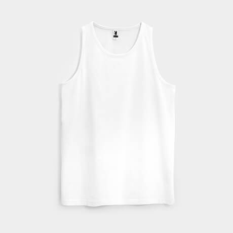 Koszulka męska na ramiączka z okrągłym dekoltem. Prążkowana lamówka przy dekolcie i wycięciach pod pachami.