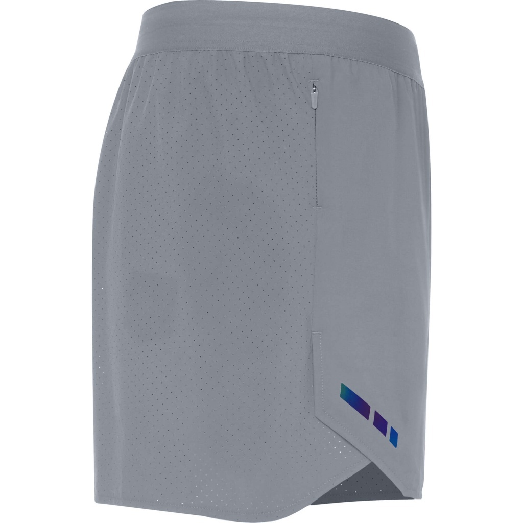 Męskie, oddychające krótkie spodenki do biegania wykonane z lekkiej, mikroperforowanej tkaniny. Wyposażone w wewnętrzne majtki z siatki oraz mini boczną kieszeń z niewidocznym zamkiem błyskawicznym. Elastyczny pas z wewnętrznym ściągaczem i odblaskowe detale z przodu oraz po bokach. Produkt posiada certyfikat GRS.