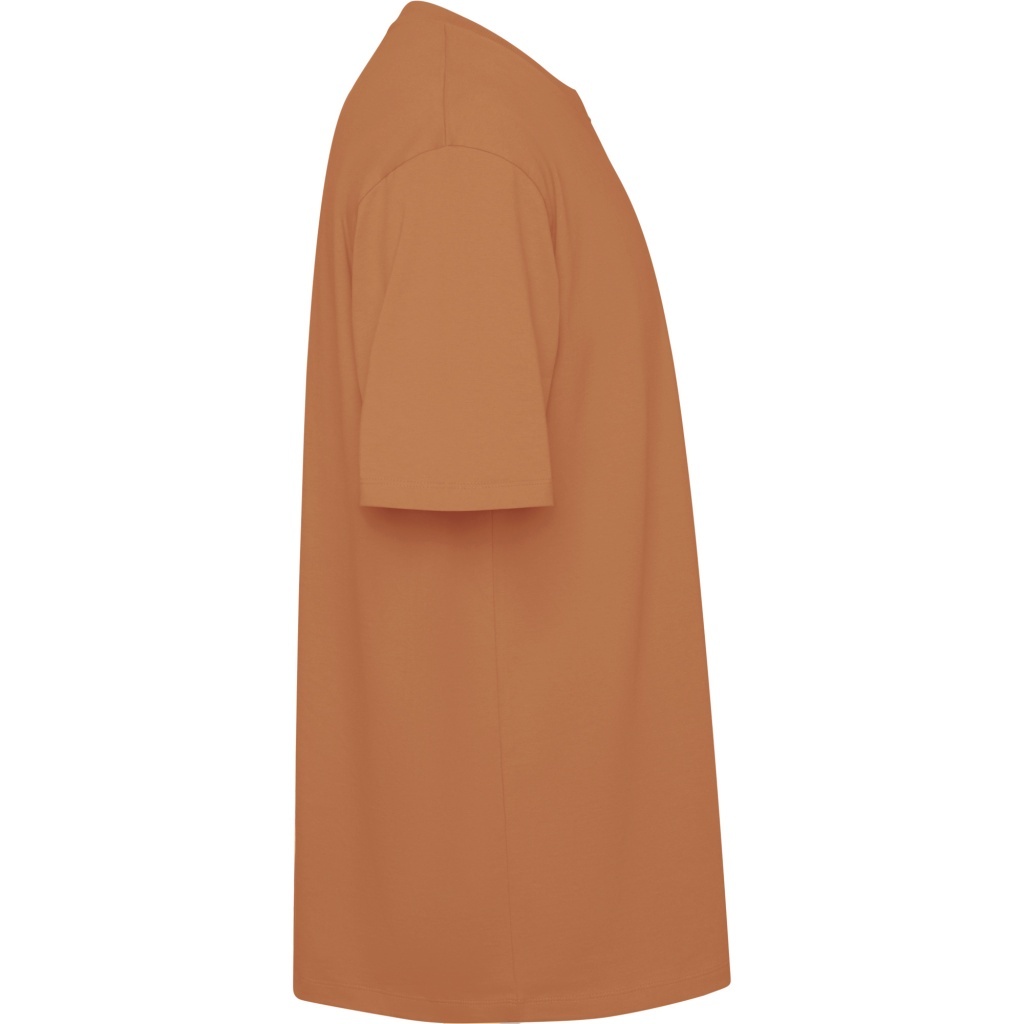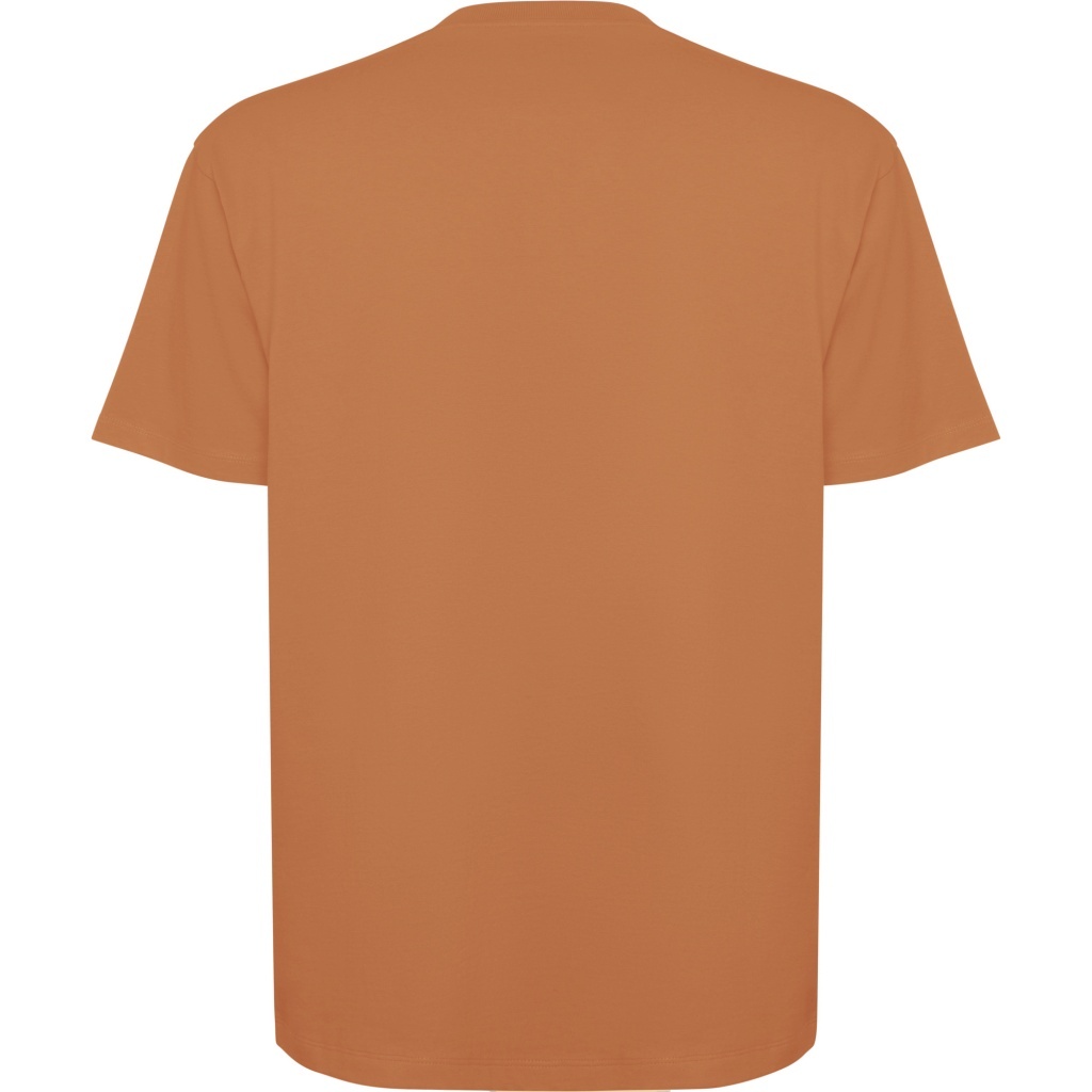 Koszulka o kroju oversize z krótkim rękawem. Okrągły dekolt wykończony ściągaczem 2x1, ze szwami przykrytymi materiałem w tym samym kolorze. · Boczne szwy. Szerokie, podwójne przeszycia na rękawach i obszyciu.