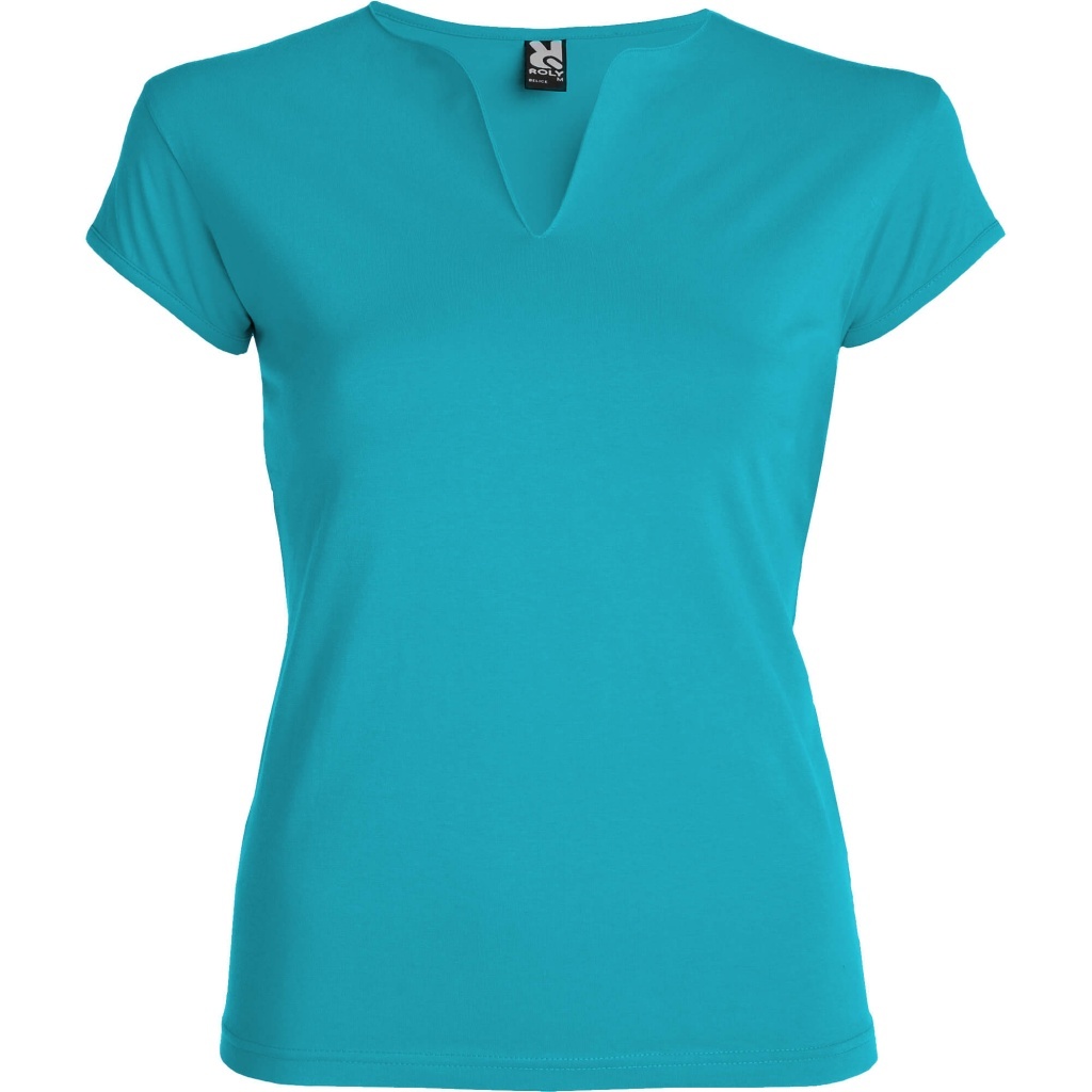 Damska koszulka BELICE, przeznaczona zarówno do działań promocyjnych, jak i jako odzież sportowa czy robocza. Wykonana z wysokiej jakości bawełny single jersey – niezwykle miękka w dotyku. Idealna do zastosowania nadruków. BELICE wyposażona w usuwalną metkę, co umożliwia stworzenie własnej linii odzieżowej.