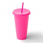 Kubek wielokrotnego użytku z pokrywką i słomką, wykonany z polipropylenu pochodzącego z recyklingu. Pokrywka jest na wcisk i posiada otwór na słomkę. Słomka jest trwała i sztywna, ze wzmocnionym końcem zapobiegającym wypadaniu z kubka. Pokrywka i słomka są dobrane kolorystycznie do korpusu kubka.