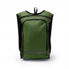Plecak zrobiony z tkaniny RPET 600D. Wyposażony w główną komorę zamykaną zamkiem błyskawicznym u góry oraz dwa otwory na wężyki do picia. Posiada dużą zewnętrzną przednią kieszeń zamykaną na zamek błyskawiczny; oba zamki mają czarną listwę. Na froncie znajduje się poziomy pasek odblaskowy poprawiający widoczność. Szelki i tył plecaka są wyściełane.