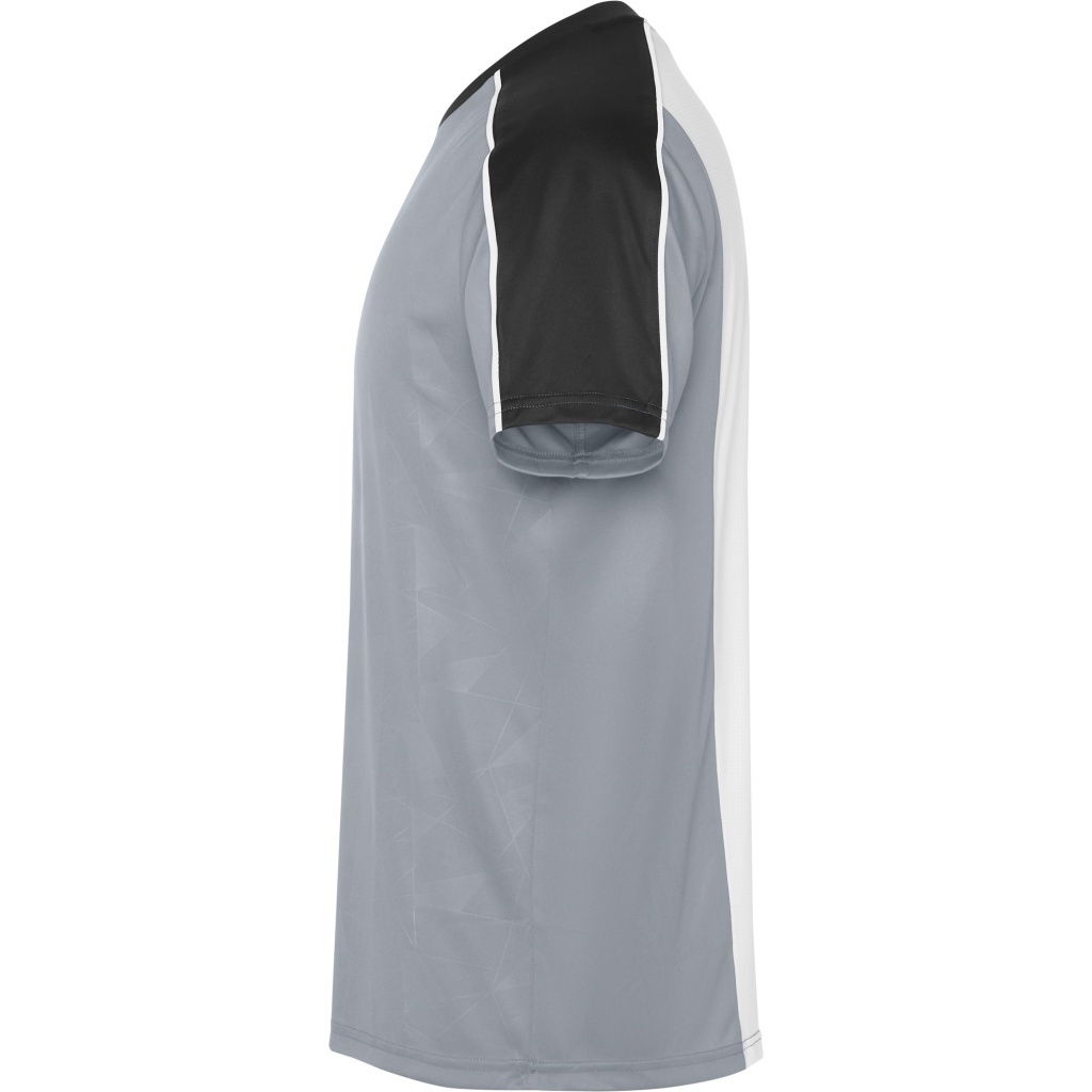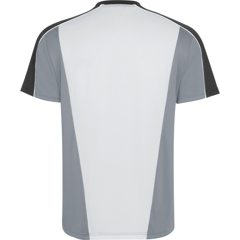 Na przednim panelu znajduje się nadruk. Lamówka zdobi raglanowe szwy rękawów. Na środku pleców zastosowano panele z tkaniny siatkowej dla lepszej wentylacji.