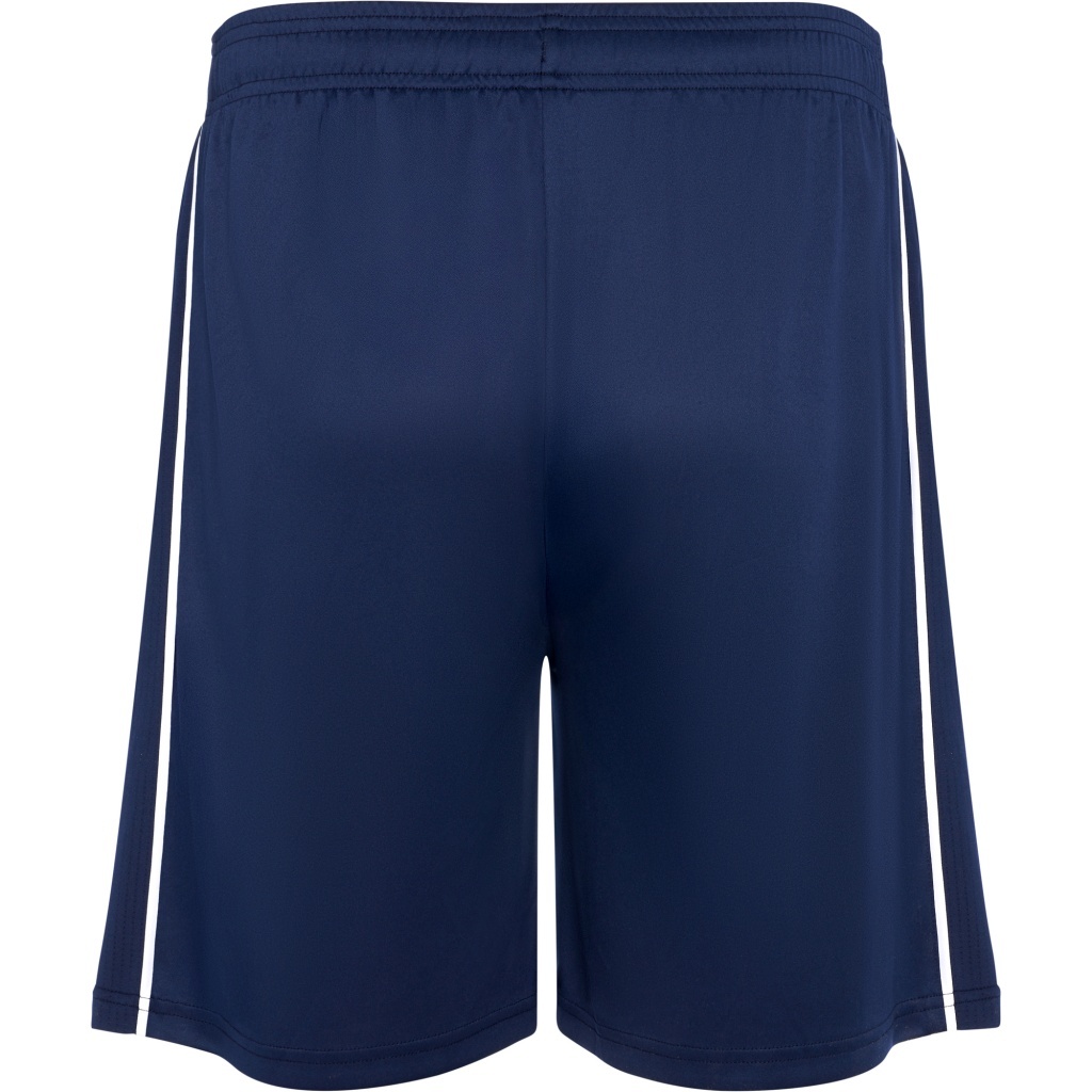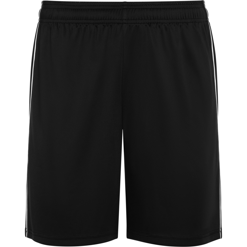 Spodenki uszyto z tkaniny głównej, po bokach umieszczono paski z oddychającej tkaniny. Lamówka wykończona kontrastowymi szwami.