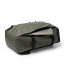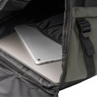 Plecak zewnętrzny wykonany ze skóry PU i wytrzymałego poliestru 600D, wyposażony w dużą komorę główną zamykaną na zamek błyskawiczny oraz wewnętrzną kieszeń z elastycznym ściągaczem na laptopa o przekątnej do 16 cali. Z przodu ukryta kieszeń zewnętrzna, po bokach sześć punktów zaczepienia, regulowane paski boczne do dopasowania objętości oraz pasek do mocowania dla większej wygody. Wyściełane plecy i szelki zapewniają komfort noszenia.