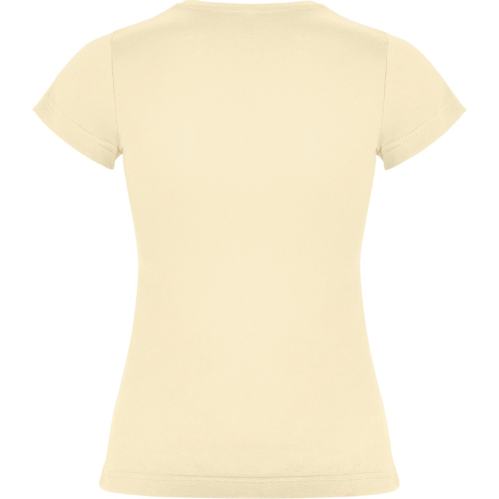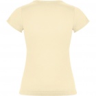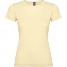 Dopasowana koszulka damska. Zaokrąglony, dwuwarstwowy ściągacz przy szyi, typowo damski fason. Wzmocnione, kryte szwy przy kołnierzyku i na ramionach, szwy boczne.