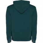 Bluza z kapturem wykonana z podwójnej tkaniny, ze sznurkowym ściągaczem. Kieszeń typu kangurka. Elastyczne ściągacze przy mankietach i w pasie.
