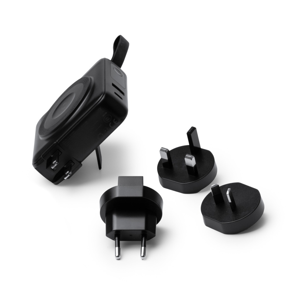 Urządzenie oferuje porty USB oraz USB typu C (wejścia i wyjścia). W zestawie znajdują się zasilacze przeznaczone do użycia w różnych krajach, dzięki czemu powerbank może pełnić funkcję stacjonarnej ładowarki. Może być też używany wyłącznie bezprzewodowo. Wyposażono go w pierścień magnetyczny, silikonowy pasek dla wygody przenoszenia oraz zintegrowaną tylną podstawkę pełniącą funkcję stojaka na telefon. Konstrukcja umożliwia jednoczesne ładowanie kilku urządzeń. Produkt zapakowany jest w eleganckie pudełko.