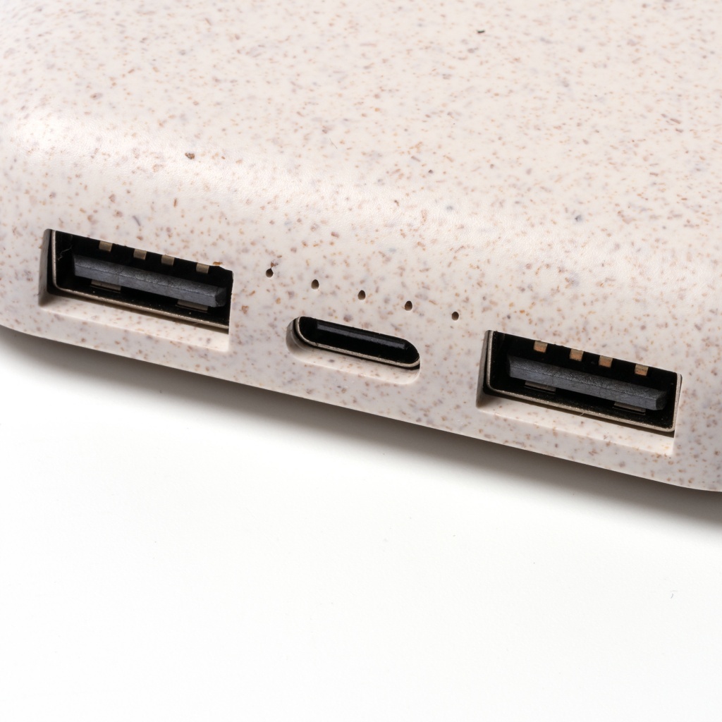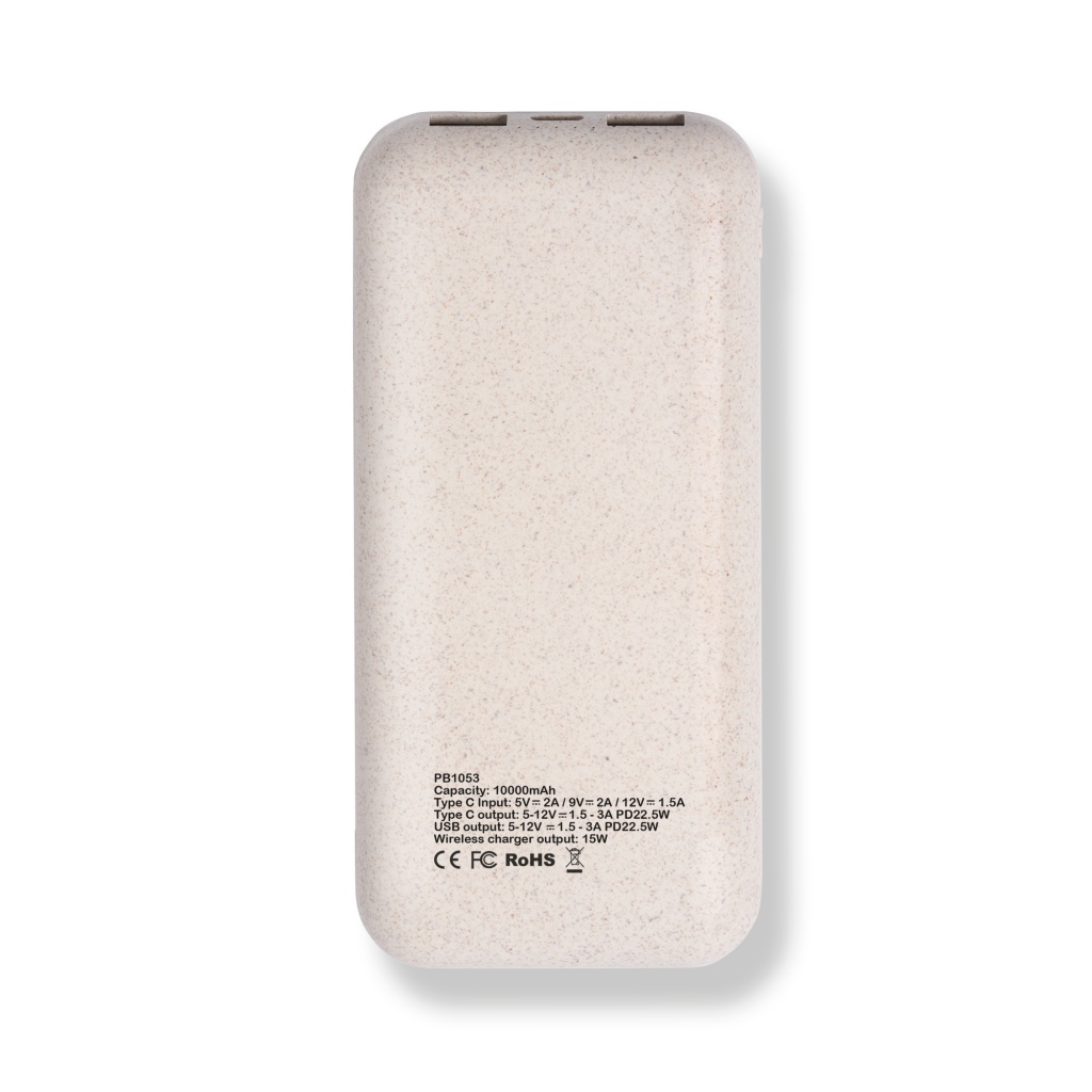 Powerbank o pojemności 10 000 mAh z kompozytowym korpusem wykonanym z bambusa i włókna pszennego wyposażony jest w bezprzewodową ładowarkę — praktyczne i ekologiczne rozwiązanie do ładowania urządzeń w podróży. Dzięki pojemności 10000 mAh zapewnia niezawodne i długotrwałe zasilanie.